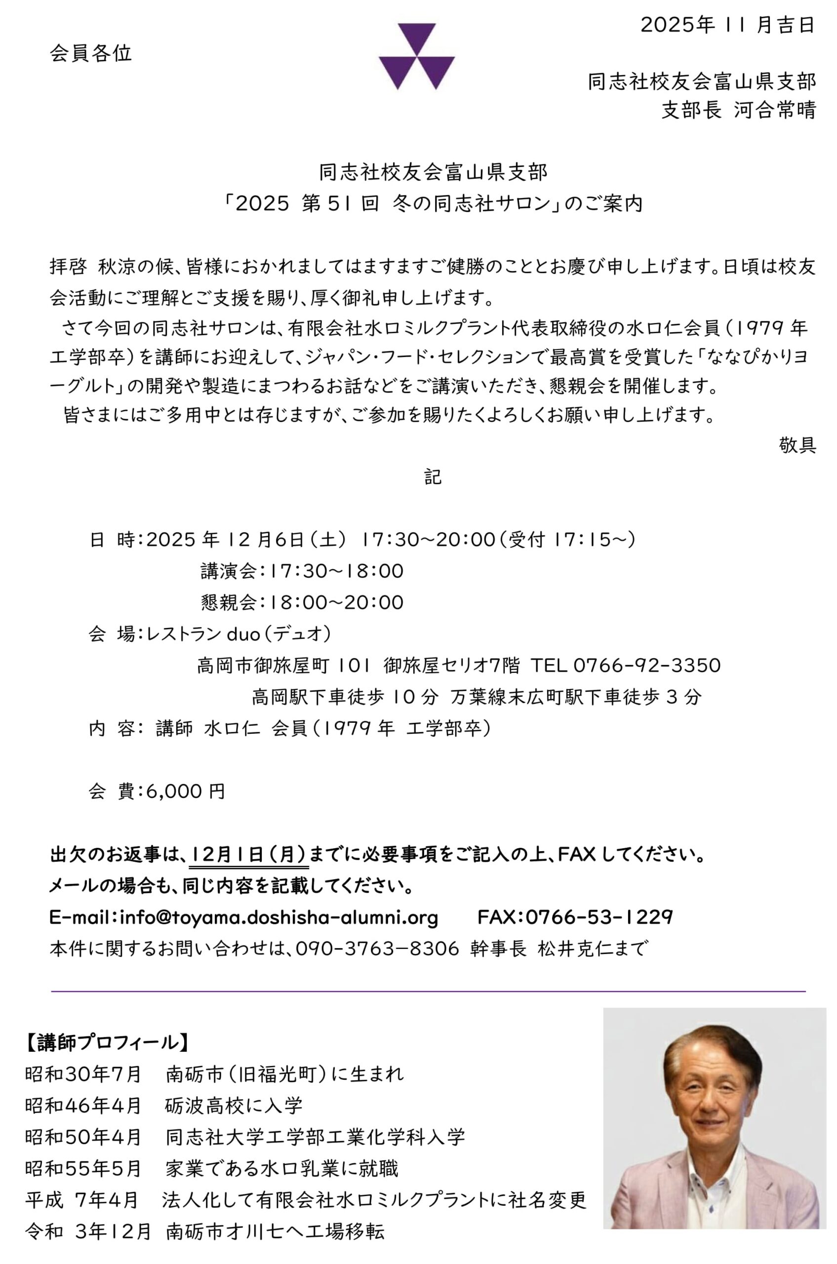 Posted by 同志社校友会 富山県支部 on 10月 12, 2025 in 開催告知